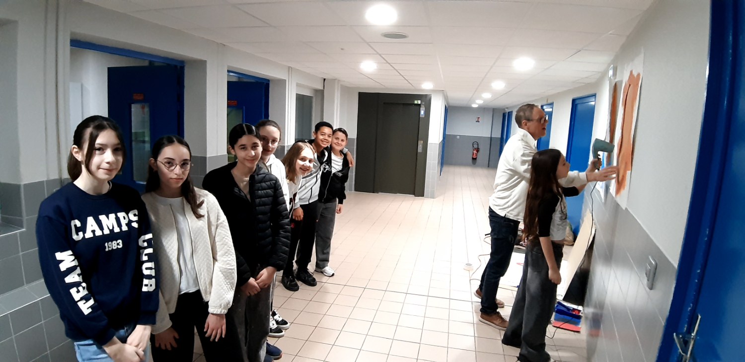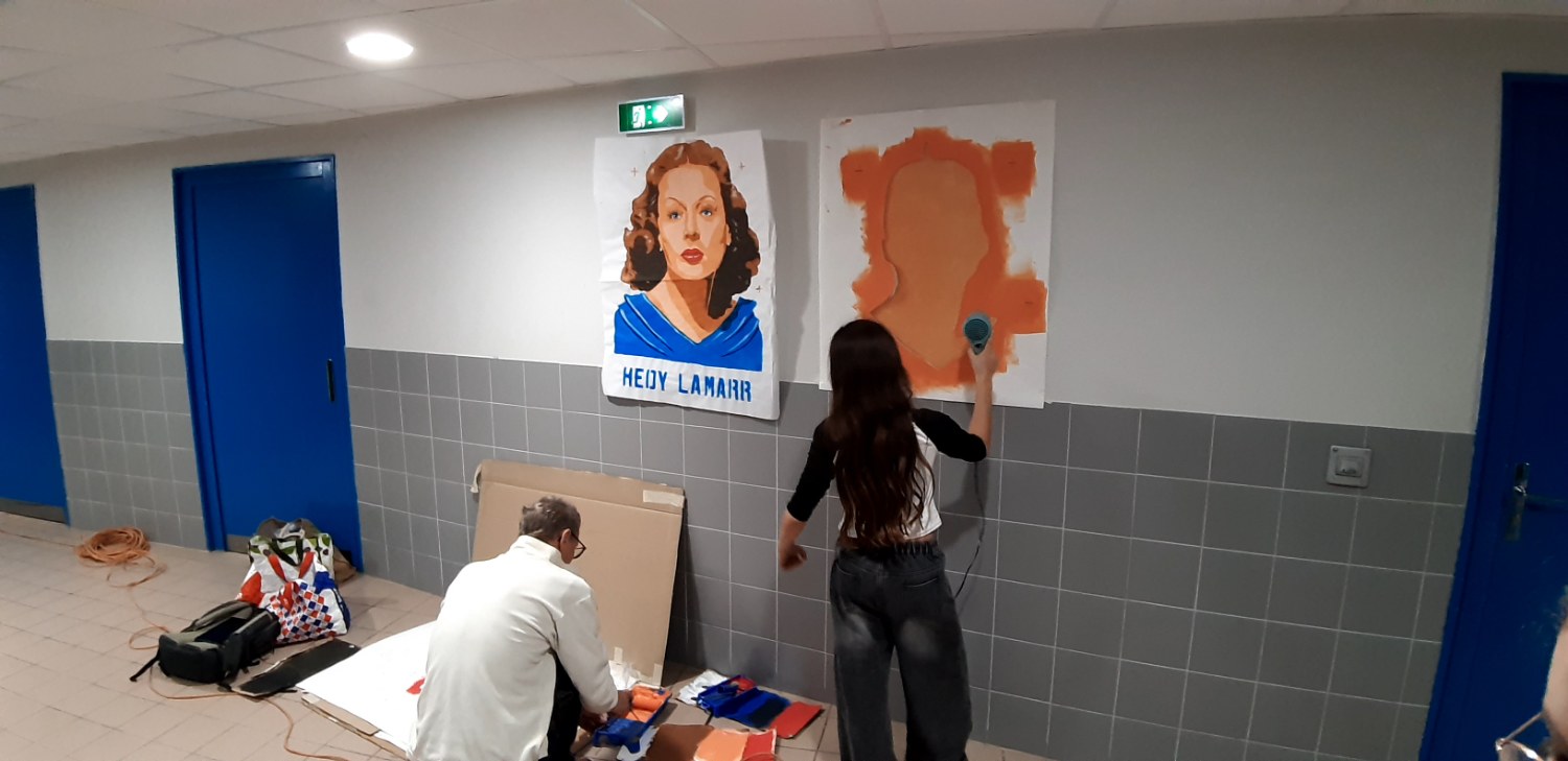 Dans le cadre de la liaison CVC-CVL et également en lien avec la Journée Internationale des droits des femmes, réalisation du portrait d'Hedy LAMAR, inventrice, sur un mur du couloir des mathématiques, par les délégués élèves des classes sciences, en partenariat avec le peintre choisi pour faire ce portrait.